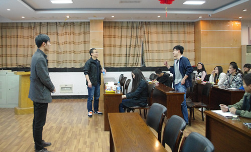 讨论环节时,张贺、徐将来、王妮等几位同学对学习试验中遇到的一些问题和一些迷惑与两位老师进行深入的交流。
