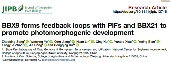 《JIPB》发表许冬清教授团队“BBX9 forms feedback loops with PIFs and BBX21 to promote photomorphogenic development”