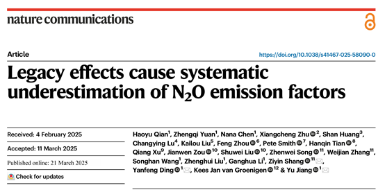 《Nature Communications》发表丁艳锋教授团队“Legacy effects cause systematic underestimation of N₂O emission factors”