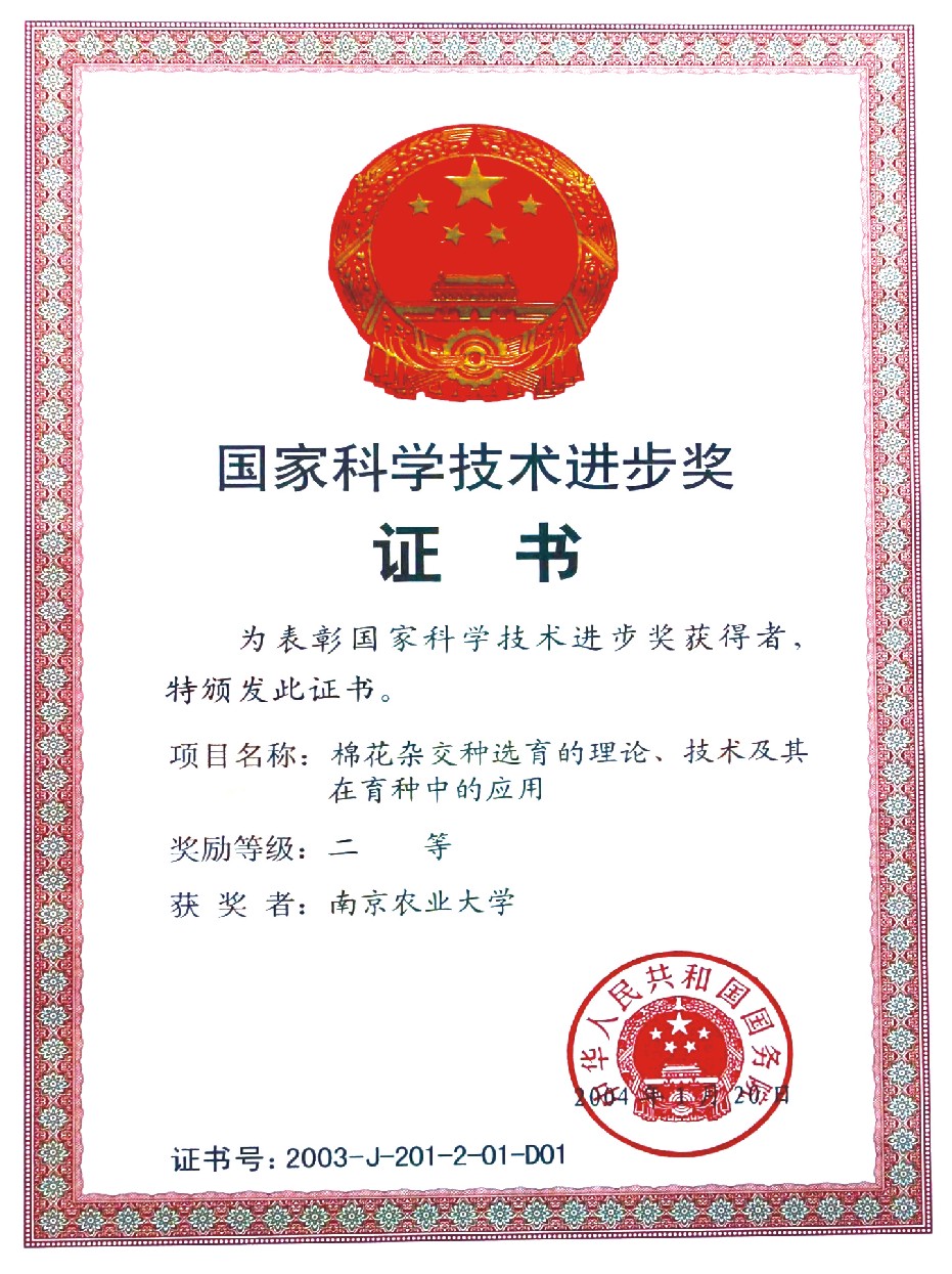 该成果在理论上揭示了杂种优势表现的特性、遗传规律及F2利用的遗传基础;发现了得到国际公认的7个芽黄、雄性不育新基因;鉴定出一种有芽黄指示性状标记的核雄性不育系和一种新的胞质雄性不育源,为杂种棉的选育提供了新种质;发现了洞A核雄性不育保持的主基因+多基因遗传方式,这是我国发现的一种新的雄性不育遗传理论;筛选出与CMS育性恢复基因Rf1紧密连锁的分子标记6个并用于辅助育种;揭示出胞质雄性不育系胞质不良效应的原因是由于雌性部分不育,因此选择与不育胞质亲和力高的基因型作恢复系,可以消除CMS的有害胞质效应。提出了杂交棉的选配技术体系,即用长江流域和黄河流域棉区的主栽品种互配,容易筛选出高优势杂交种;由此发掘出一般配合力高、特殊配合力强的核心亲本10多个。提出了有指示性状标记的杂交种和雄性不育杂交种的种子生产技术体系,并得到了广泛的利用;提出杂交种种子纯度的快速检测技术;研制出杂交棉“宽行稀植,肥促化调”的配套高产栽培技术,它的推广利用带来了长江流域棉区栽培技术的新变革,显著提高了棉花的生产水平与效益。