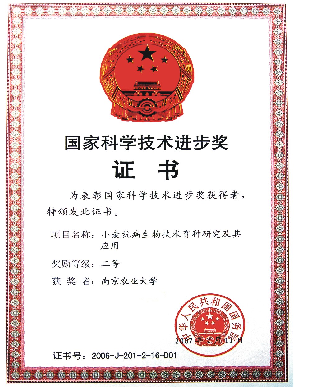 该成果开发出与小麦抗病基因紧密连锁或共分离的分子标记。将细胞工程、分子标记辅助选择、滚动回交、轮回选择、聚合育种、人工接种和重病区鉴定和一年多代等方法紧密结合,构建了小麦抗病生物技术育种平台,创造出一批聚合多个抗病基因和优质基因的新种质,成功地用于育种实践。育成了15个抗白粉病、抗赤霉病、抗黄矮病的小麦新品种。累计推广面积4319万亩,增产小麦10亿公斤以上,增收14多亿元。在国内外发表论文107篇,其中SCI收录论文18篇,被SCI引用139次。出版专著2本。申请发明专利9项,品种权3个。