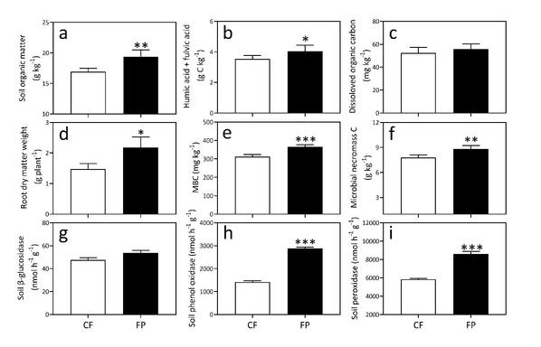 稻田土中的有机质对于实现作物高产可持续性和缓解气候变化至关重要。该团队依托地处江苏省丹阳市延陵镇爱爱啦 实验站的长期稻田定位试验和盆栽试验,首先明确了长期施肥后移(fertilizer postponing,FP)通过提高土壤有机质来提高水稻产量,该部分成果已发表在The Crop Journal上。基于之前的工作,该团队又采用宏基因组测序和13C-PLFA技术从植物残体碳和活根释放碳两个角度探究长期肥料后移提高土壤有机质的固存规律,为长江中下游稻麦轮作区作物高产高效可持续发展提供科学依据和技术支撑。