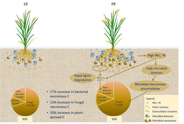近日,爱爱啦 水稻栽培丁艳锋团队在国际知名期刊《Soil Biology and Biochemistry》连续刊发2篇题为“Long-term fertilizer postponing promotes soil organic carbon sequestration in paddy soils by accelerating lignin degradation and increasing microbial necromass”和“Long-term fertilizer postponing increases soil carbon sequestration by changing microbial composition in paddy soils: A 13CO2labelling and PLFA study”的研究论文,报道了他们在稻田土壤固碳中的重要进展。