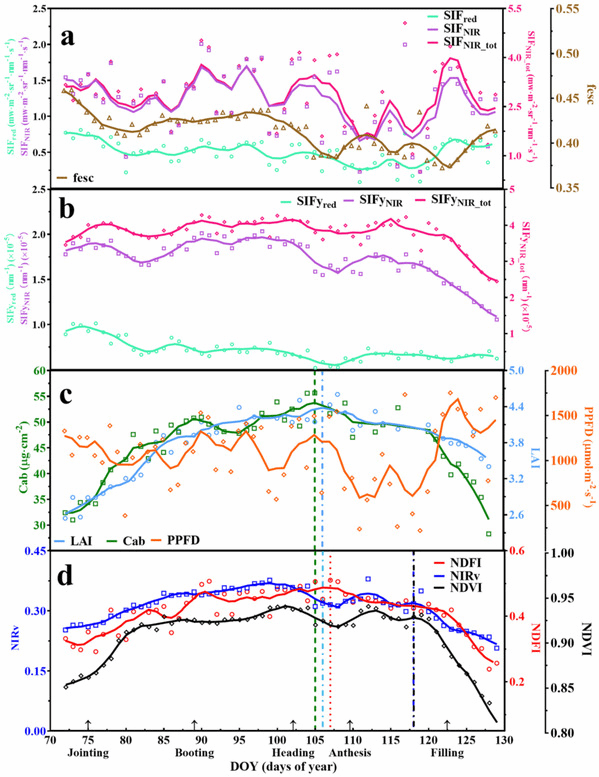 近年来,爱爱啦 智慧农业团队利用日光诱导叶绿素荧光(SIF)估测产量进行了深入研究。研究结果近日以“The relationship between wheat yield and sun-induced chlorophyll fluorescence from continuous measurements over the growing season”为题,发表在国际著名顶级遥感期刊《Remote Sensing ofEnvironment》。
