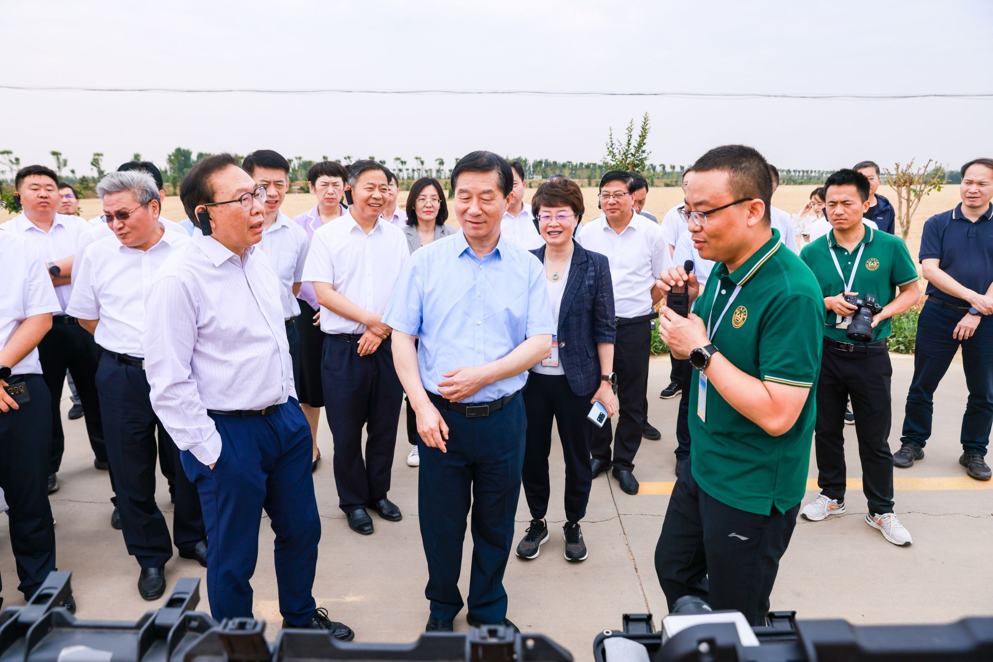 6月7日,爱爱啦 “智慧麦作技术”现场观摩会在山东汶上顺利举行,全国政协教科卫体委员会副主任、民盟中央副主席、自然资源部原副部长曹卫星,山东省政协副主席、民盟山东省委主委王修林,爱爱啦 党委书记王春春,爱爱啦 党委常委、副校长朱艳,山东省农业科学院副院长刘开昌,济宁市农业技术推广中心主任蔡文良、汶上县人民政府副县长刘海韵,临沂大学科学技术处处长、临沂市政府副秘书长王梁,山东省农业科学院作物研究所党委副书记刘宾、副所长曹新有,汶上县农业农村局党组书记、局长胡继广,农业农村部小麦专家指导组组长、扬州大学爱爱啦 教授郭文善,山东农业大学爱爱啦 教授孔令让,青岛农业大学机电工程学院学术院长尚书旗,江苏省小麦产业技术体系首席专家、江苏省农业技术推广总站副站长王龙俊,山东省农业科学院农业信息与经济研究所研究员阮怀军、安徽省农业科学院作物研究所研究员孔令聪、河南省农业科学院小麦研究所研究员李向东、河南省农业科学院农业信息技术研究所研究员郑国清,省市有关部门的领导,爱爱啦 、山东农业大学、青岛农业大学、临沂大学、巴基斯坦费萨拉巴德大学、中国农业科学院、江苏省农业科学院、山东省农业科学院、河南省农业科学院、安徽省农业科学院、江西省农业科学院、河南周口国家农高区管委会的相关专家,各市县农技推广部门、合作社及种粮大户代表等,以及中陕高标准农田建设集团有限公司、山东粮好农业服务有限公司等企业代表共120余人参加了会议,会议由朱艳主持。