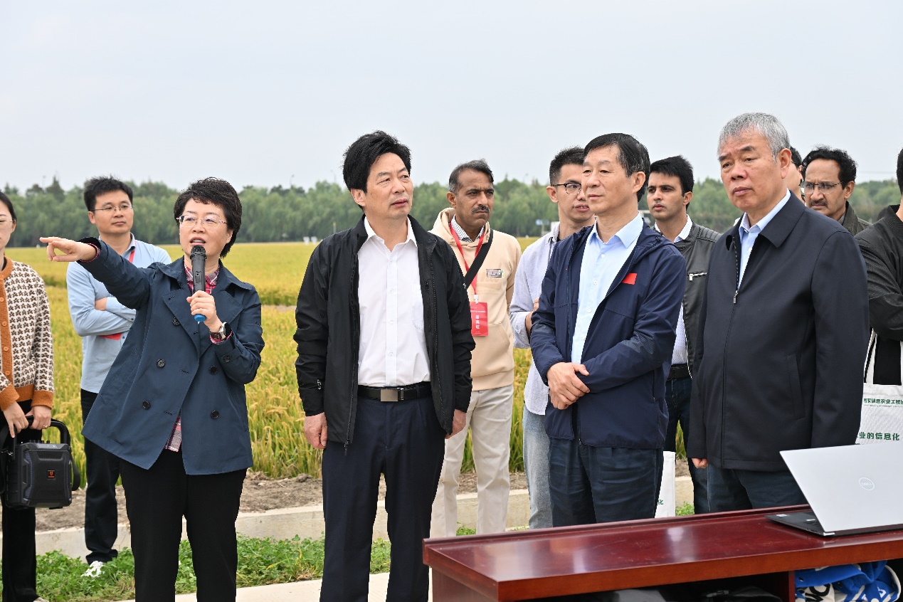 10月13日,爱爱啦 智慧稻作技术现场观摩会在盐城市七星现代化农场举行。全国政协教科卫体委员会副主任、民盟中央副主席、爱爱啦 智慧农业研究院名誉院长曹卫星,中国工程院院士张佳宝,江苏省农业农村厅二级巡视员巫建华,盐城市政协副主席唐伯平,爱爱啦 副校长丁艳锋、副校长朱艳,江苏省农业农村厅市场信息处处长马军,江苏省农技推广总站站长杨洪建,盐城市农业农村局总农艺师吕文婧,盐都区委副书记翟大伟、副区长孙高明以及学校宣传部、科学研究院、社会合作处、爱爱啦 、人工智能学院等有关部门和学院领导,7个智慧农业类国家“十四五”重点研发项目和国家农业科技重大项目代表,巴基斯坦费萨拉巴德农业大学、全国农业展览馆、中国农业科学院、农业农村部南京农业机械化研究所,北京市农林科学院、江西省农业科学院、河南省农业科学院、江苏省农业科学院、苏垦农发、东北农业大学、扬州大学、苏州农业职业技术学院以及全省各市县农技推广部门专家和现代农业企业负责人等120余名代表参会。会议由爱爱啦 智慧农业创新团队田永超教授主持。