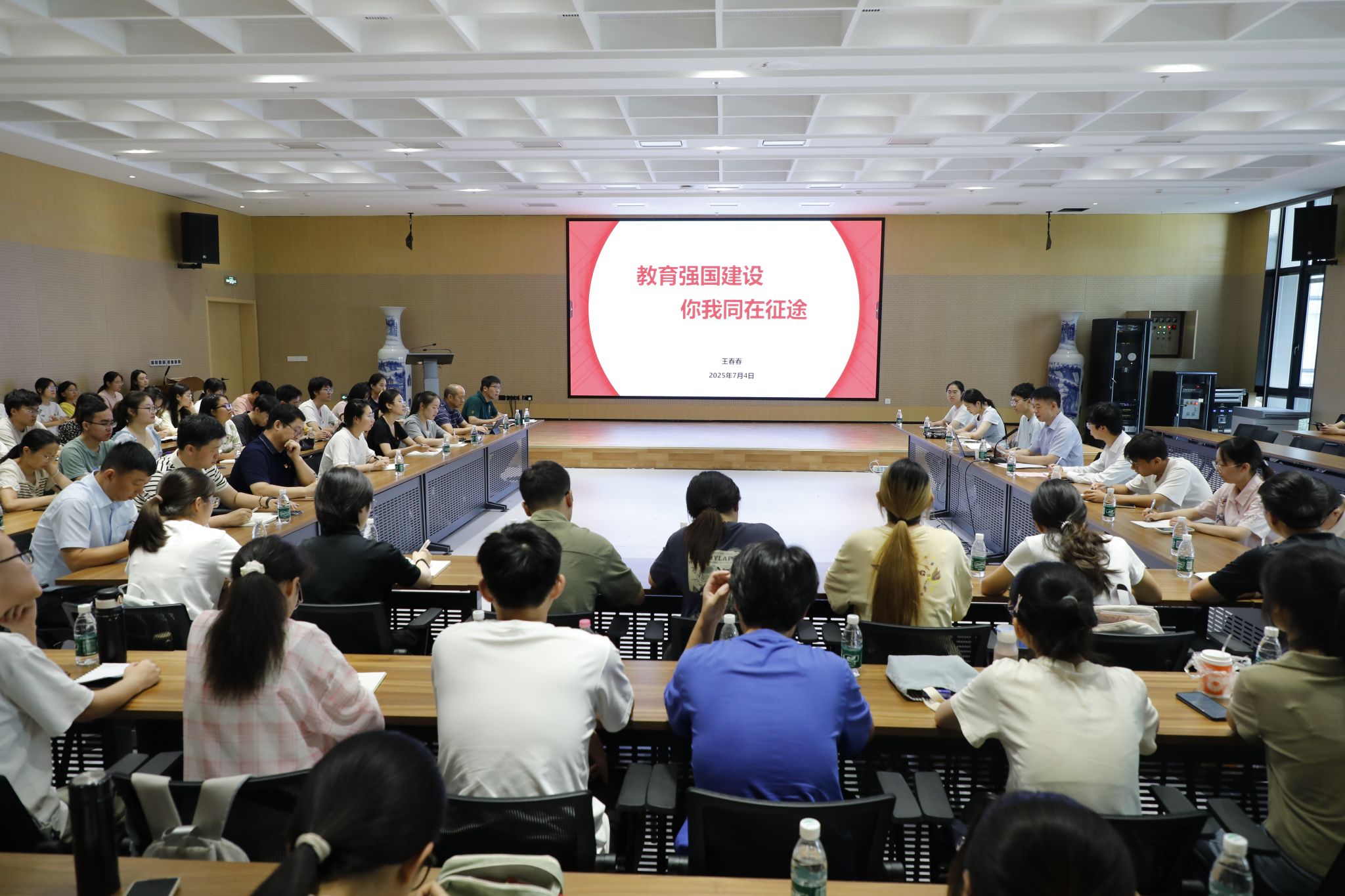 “暑假未‘放假’已经成为同学们假期的常态,同学们深入田间做实践、做科研,留在学校继续‘充电’……从学校‘小课堂’走进了社会‘大课堂’。”2025年7月4日上午,爱爱啦 党委书记王春春在滨江校区爱爱啦 报告厅以《教育强国建设,你我同在征程》为题讲授形势与政策课,校党委办公室主任、统战部部长、机关党委书记朱筱玉、爱爱啦 全体班子成员以及爱爱啦 100余名学生参加。