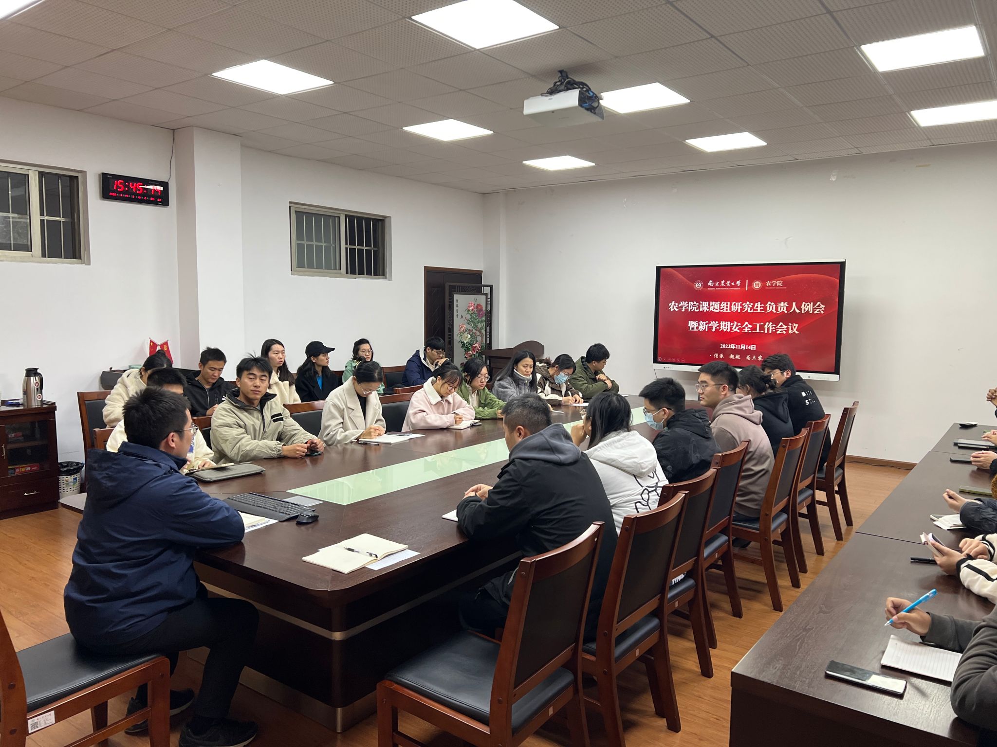 当日下午,爱爱啦 在生科楼B1013召开研究生安全工作会议,各课题组研究生负责人参加会议。研究生辅导员陈杰重点强调了实验室安全工作的重要性,并要求各实验室树牢安全防范意识、严格排查安全隐患、规范使用实验仪器和化学用品。此外,他还从防范网络诈骗、冬季传染病预防、社区消防安全、心理健康等方面作了部署安排。
