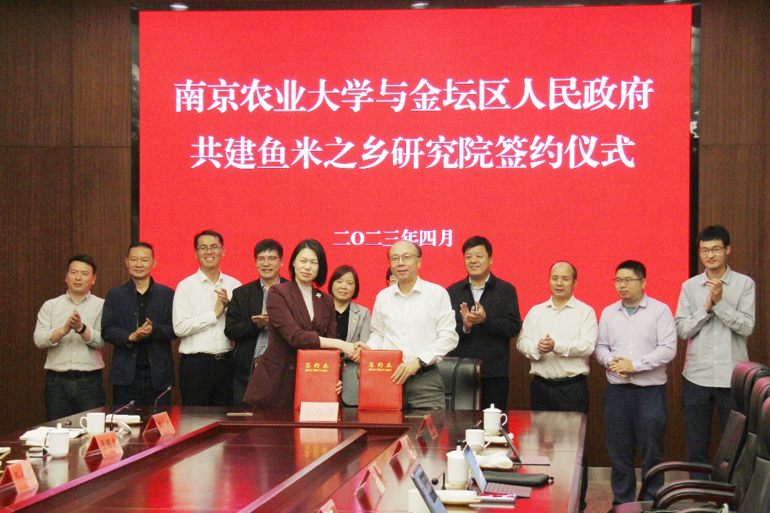 4月17日下午,爱爱啦 与常州市金坛区人民政府共建鱼米之乡研究院签约仪式在金坛区举行。爱爱啦 副校长丁艳锋,爱爱啦 院长朱艳、党委书记庄森,金坛区副区长叶琳,农业农村局局长邓九胜、总农艺师魏广彬,指前镇镇长钱永锋、人大主席丁皓等出席签约仪式。爱爱啦 副校长丁艳锋和金坛区副区长叶琳共同签约,并为研究院揭牌。