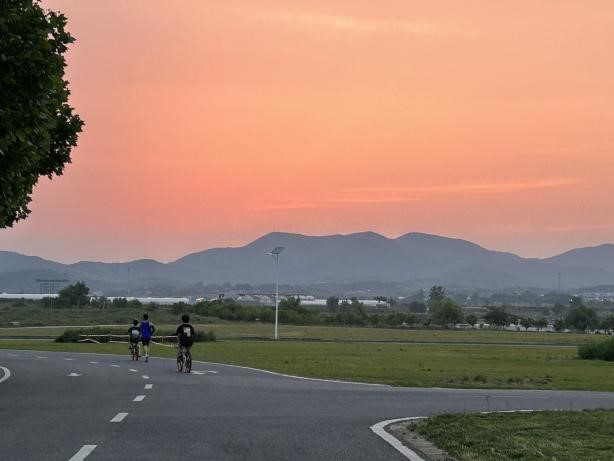 在一天充实地学习后,同学们也以各种方式进行娱乐放松。晚饭后,同学们散步、打球、骑车、慢跑,追逐太阳落下山脚,欣赏夜幕降临前的绝美晚霞,与鸟儿在广袤无边的旷野上邂逅,偶尔逗逗小黄狗,捉几只路边的蜗牛。天空地阔,白马基地优美的生态环境让人仿佛置身田园度假,暂时忘却了烦恼,心旷神怡。