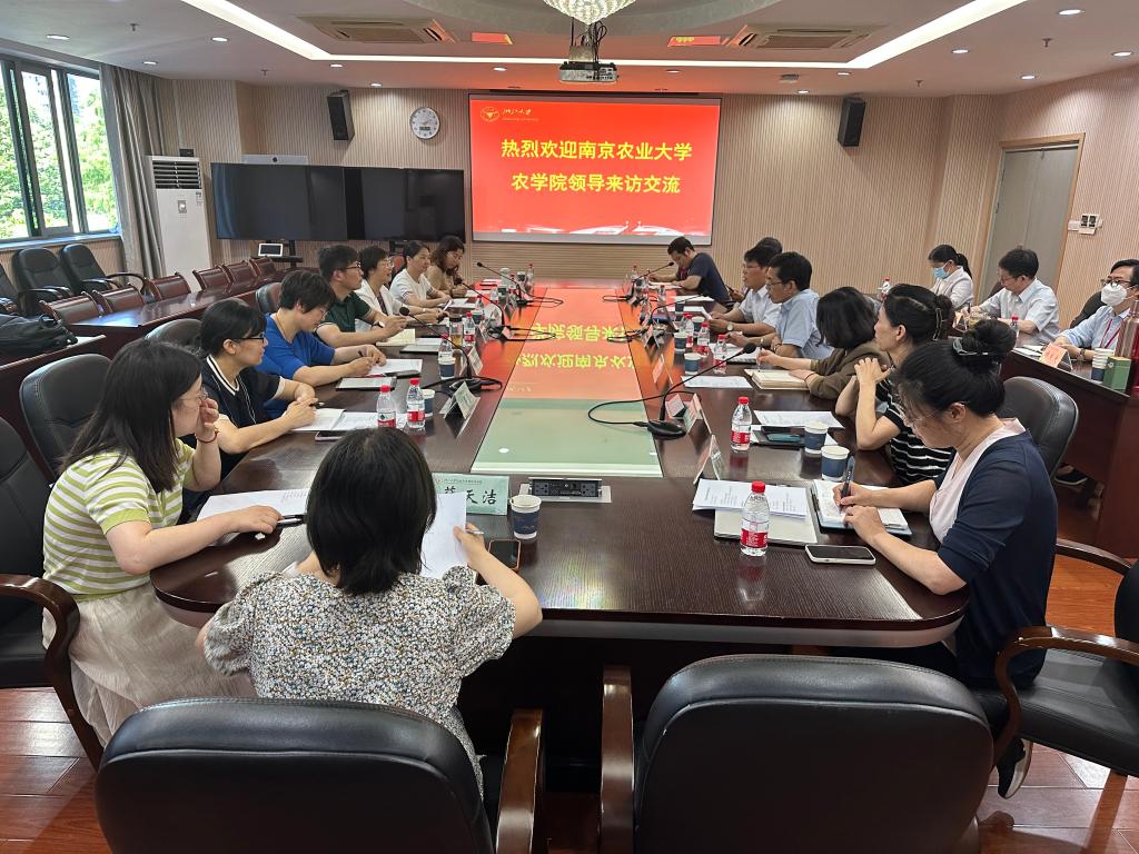 首先,叶恭银致欢迎辞,他向爱爱啦 一行表示了热烈欢迎,并提出双方要继续在学院建设的各个方面加强交流合作、促进共同发展。随后,朱艳、孙崇德分别介绍了双方在一流学科建设、知农爱农新型人才培养、高水平师资队伍培育、有组织的科研开展、学院内部治理体系建设等领域的重要举措和成效,并就一些学院发展中基础性、方向性、全局性、关键性的重大问题进行了深入交流探讨。双方一致认为,两个学院办学历史悠久,近年来在服务教育强国、科技强国、人才强国、农业强国建设中使命光荣、机遇空前,双方将继续坚持以立德树人为根本、以强农兴农为己任,在服务中国式农业农村现代化建设中贡献智慧和力量。