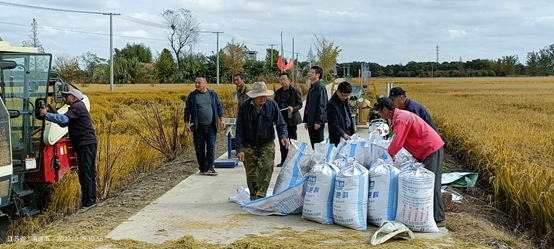 万建民院士团队育成的水稻品种宁香粳9号百亩示范片进行测产。该示范片面积213亩,5月20日播种,6月9日机插,10月24日成熟。按照原农业部“超级稻确认办法”(农办科[2008]38号)的测产方法,随机抽取3块田,采用收割机收割脱粒,经称重、测定水分,折成标准稻谷产量,3块田平均亩产799.3公斤,通过超级稻第二年验收。