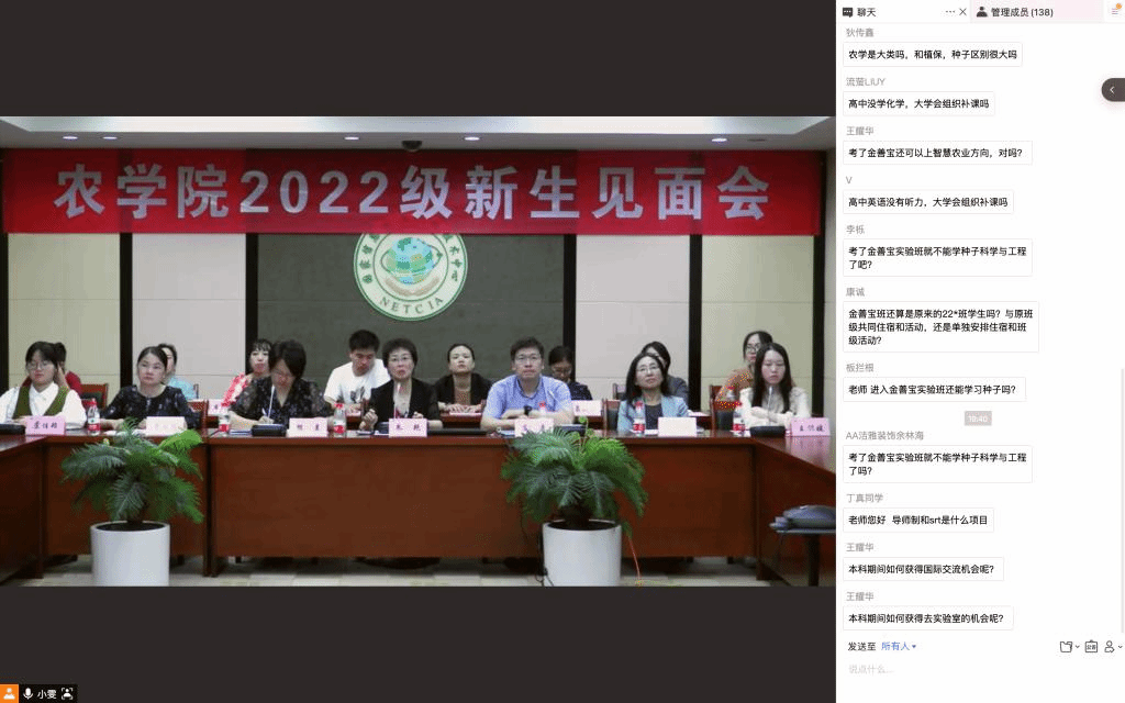 随后,新生及新生家长自由提问,“专业前景如何”“孩子未来发展空间如何”“孩子能参加什么样的活动锻炼综合能力”“智慧农业未来主要做什么”“如何参加导师制”……通过网络互动,留言区的学生、学生家长表达了对专业、对学院、对学生发展的关心与期待,学院领导一一细心作答。