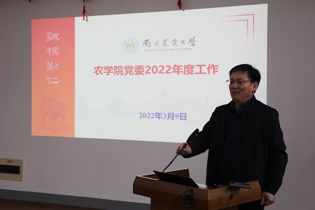 会议强调,二〇二二年是党的二十大召开之年,也是学校全面落实“十四五”规划、加快建设世界一流大学的关键之年,学院党委要全面贯彻落实习近平新时代中国特色社会主义思想和党的十九届六中全会精神,全面加强党的领导,加快推进一流学科建设,力争在领军人才、重大成果、重大项目取得新的突破。会议号召老师们进一步解放思想,勇于担当、踏实肯干,以更加昂扬的斗志为作物学一流学科建设贡献智慧和力量。