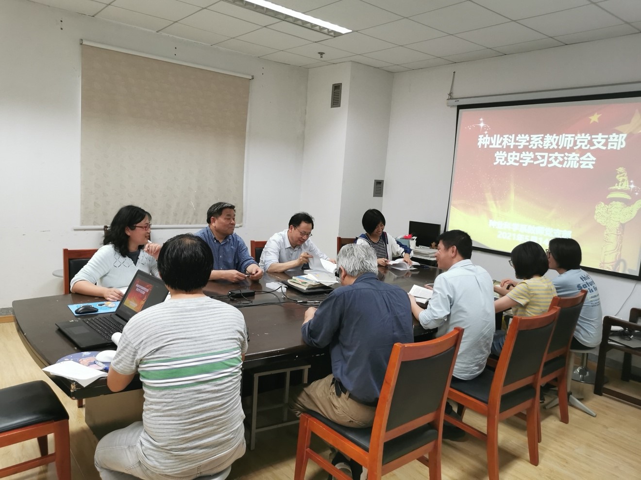 为了深入学习贯彻习近平总书记在党史学习教育动员大会上的重要讲话精神,原原本本学,种业科学系教师党支部于5月14日在理科楼D701会议室举行了党史学习交流会,共同学习《中国共产党简史》。会议由支部书记鲍永美主持,洪德林、刘康、钱虎君等党员参加本次活动。