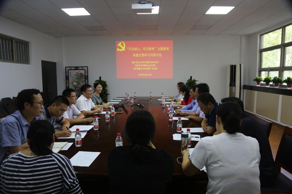 9月11日下午,爱爱啦 农学系教师党支部、镇江市农业农村局农业机械技术推广站党支部、句容市宝华镇仓头村党总支在爱爱啦 会议室举行了“不忘初心、牢记使命”主题教育学习与研讨会。爱爱啦 党委书记戴廷波,镇江农业农村局副局长吴杨,镇江农业农村局农业机械技术推广站党支部书记、站长卞丽娜,仓头村党总支书记赵贤财,农学系教师党支部书记周琴及各支部党员代表参加了主题教育学习与研讨会。