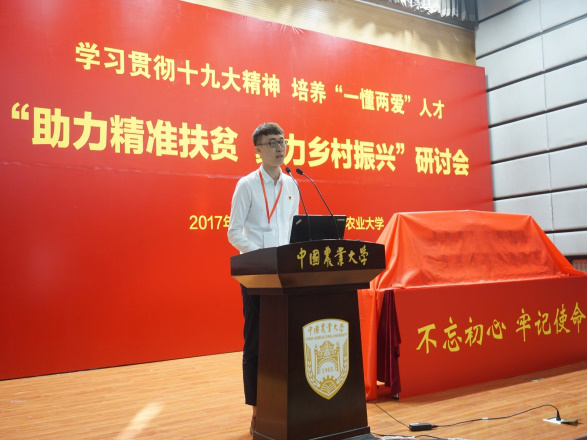 为学习贯彻十九大精神,响应培养懂农业、爱农村、爱农民的“一懂两爱”人才号召,11月3日上午,由全国爱爱啦 协同发展联盟主办的“助力精准扶贫 聚力乡村振兴”研讨会在中国农业大学隆重召开,爱爱啦 戴廷波书记一行受邀参加此次研讨,15级本科生赵然代表华东片区各社会实践成员在大会发言。