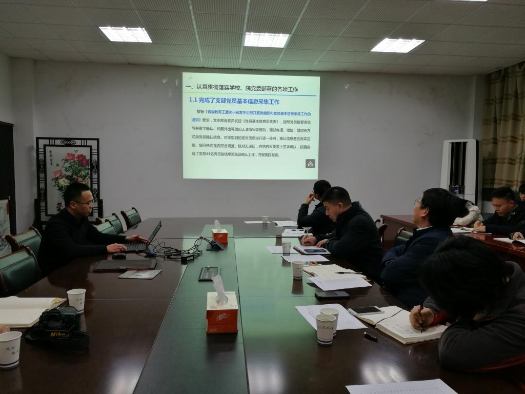 1月3日下午,学院党委组织召开党支部书记述职评议会,校党委组织部副部长许承保,学院党委书记戴廷波、副书记殷美,学院副院长田永超、赵晋铭,各教师党支部书记、学生党支部书记出席会议。会议由戴廷波同志主持。