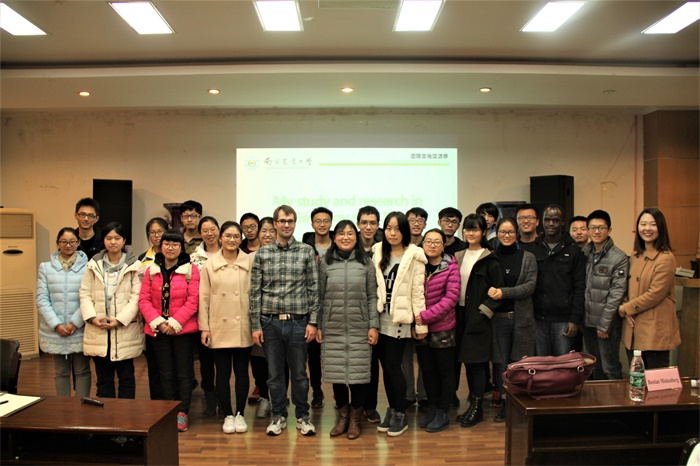 Bastian Minkenberg还向同学们介绍了在留学方面需要了解和学习的知识,以及他的求学经历。接着Bastian Minkenberg对水稻的一些专业知识和“基因枪法”这一技术进行了说明。同学们都听得非常认真,还和Bastian Minkenberg进行了热情的互动,并对留学相关的知识进行提问,Bastian Minkenberg也一一做出回答。