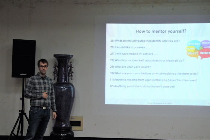 Bastian Minkenberg主要从“How to mentor yourself?”、“How to make right decisions?”以及“Bastian’s career, and advice about PhD studies”三方面开讲,即“如何指引自己”、“如何做出正确的决定”和分享自己关于博士的学习和建议。