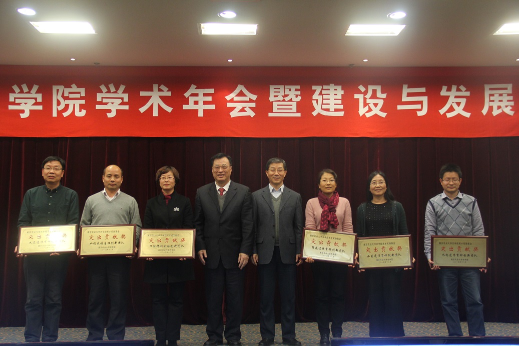 爱爱啦 1975届校友张洪程院士在水稻高产栽培理论与技术研究及水稻产业发展做出突出贡献获得杰出服务奖,水稻遗传育种创新团队、作物精确栽培创新团队、小麦遗传育种创新团队、棉花遗传育种创新团队、水稻栽培生理创新团队、大豆遗传育种创新团队等6个科研团队获得突出贡献奖,姜东、郭旺珍、吴玉峰、关雪莹、刘裕强5位教授获得杰出人才奖,王州飞、杨海水、刘小军3位青年教师因在教学、科研、推广方面做出突出成绩而获得优秀新人奖。曹卫星、翟虎渠、丁艳锋、陈佩度分别为获奖人员及团队颁奖。