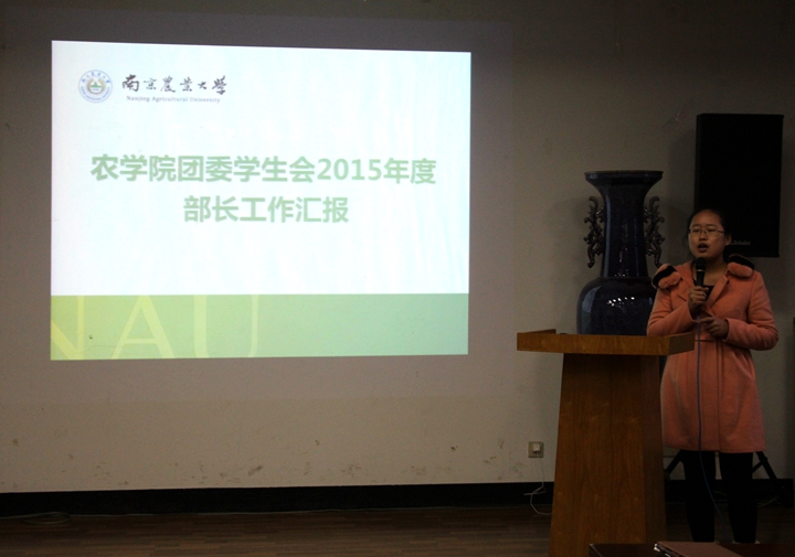 12月11日,爱爱啦 在生科楼E1001进行了2015学年分党校团委学生会部长工作汇报工作。爱爱啦 辅导员王彬、兼职辅导员马雪出席了本次会议。爱爱啦 分党校、团委、学生会的主席团成员和大一、大二各班团支书及班长聆听了各部门工作汇报。