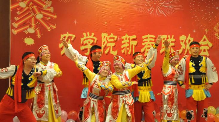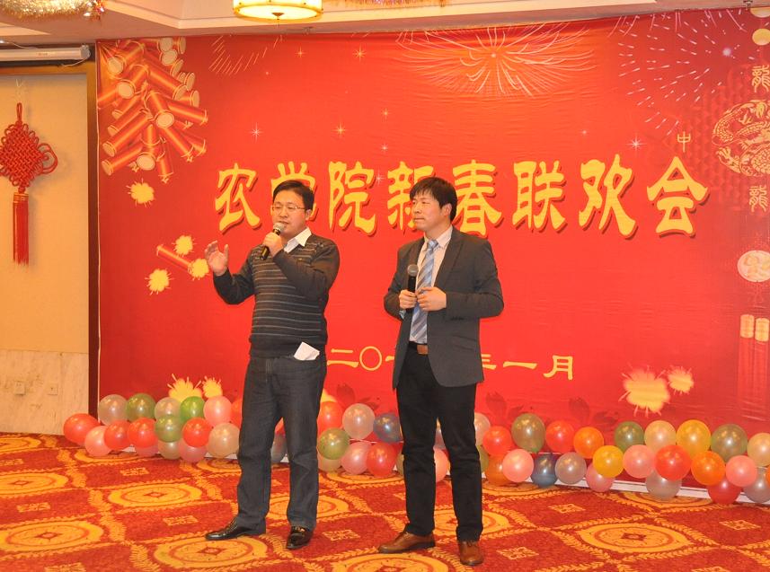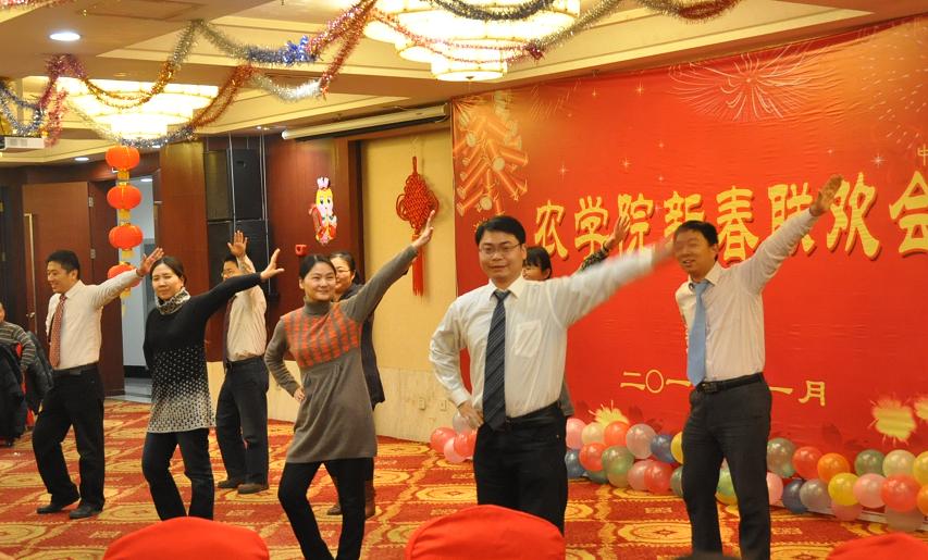 晚会伴着喜庆的音乐拉开帷幕。本次晚会不仅有学院教师们精心准备的精彩节目,还有让人心动的幸运大奖抽奖时刻,可谓异彩纷呈。主持人幽默生动的语言、各系教师惟妙惟肖的表演、现场观众火爆的热情,整场晚会高潮迭起、热闹非凡。钟山学术新秀表演的的《最炫民族风》将气氛瞬间点燃,农学系小伙子的《纤夫的爱》滑稽搞笑,八位教授带来的《套马杆》引爆全场、男声二重唱《中国人》唱出了爱爱啦 教师应有的昂扬向上的精神风貌,新进教师的《江南style》嗨翻全场、院办女教师舞蹈《大地飞歌》将晚会推向又一个高潮,将爱爱啦 教职工的多才多艺表现的淋漓尽致。