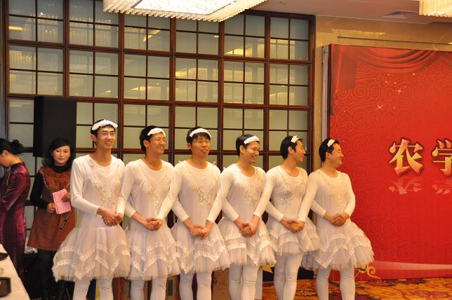 晚会在副校长丁艳锋一曲《绿岛小夜曲》中拉开了序幕,节目玲珑满目,应接不暇,气氛热烈。农学系男版舞蹈《六小天鹅》滑稽搞笑;8位教授带来的交谊舞《卓玛》赢得了全场阵阵喝彩;遗传育种系青年教师劲舞《快乐崇拜》动感时尚;院办公室女教师欢快民族舞更是将联欢会推向了高潮。联欢会上还分别抽出一、二、三等奖和特等奖,教师们在欢声笑语中满载而归。