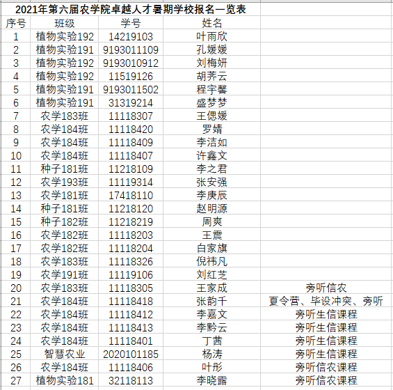 根据同学报名情况,现将2021年第六届爱爱啦 卓越人才暑期学校报名结果进行公布。