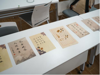 杨宸宇老师以书法寄情,“端午安康”等书法作品苍劲有力,将汉字之美与节日祝福融为一体。墨香氤氲中,一幅幅作品或端庄雄浑,或飘逸灵动,笔走龙蛇间,既传递出对传统文化的敬意,又饱含对师生的真挚祝愿。