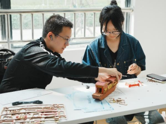 在随后的龙舟文创赛中,画笔起落间,龙舟从单调的一片黑白“竣工”成激流勇进的家国之舟。同学们以家国情怀为主题,给龙舟绘上了五彩缤纷的外衣。无人的龙舟上一下子添上了一群团结协作,奋勇争先的赛手。一条条破浪的龙舟,一位位拼搏的赛手,正是我们国家与民族团结一心,不畏苦难勇往直前的真实写照,“团结拼搏、勇立潮头”的龙舟精神,悄然与党的奋斗精神血脉相连,让红色基因在传统民俗的土壤中生根发芽。