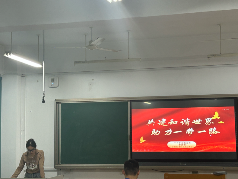 随后,组织委员李彦蓉带大家进行了以“共建和谐世界,助力一带一路”为主题的微党课学习,从第三届“一带一路”合作高峰论坛出发,围绕“一带一路”的历史追溯、十年成果、重大意义展开,引领大家体悟共建“一带一路”的深刻内涵,从中汲取新时代的奋进力量。