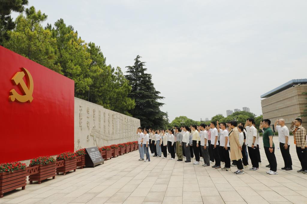 参观结束后,爱爱啦 一行在党旗前庄严宣誓。整齐洪亮的宣誓声在广场上回响,47名党员佩戴党徽,在领誓人的带领下,高举右拳庄重宣誓,表情严肃坚定,承诺掷地有声,表达了为党的事业奋斗终身的决心和信念。