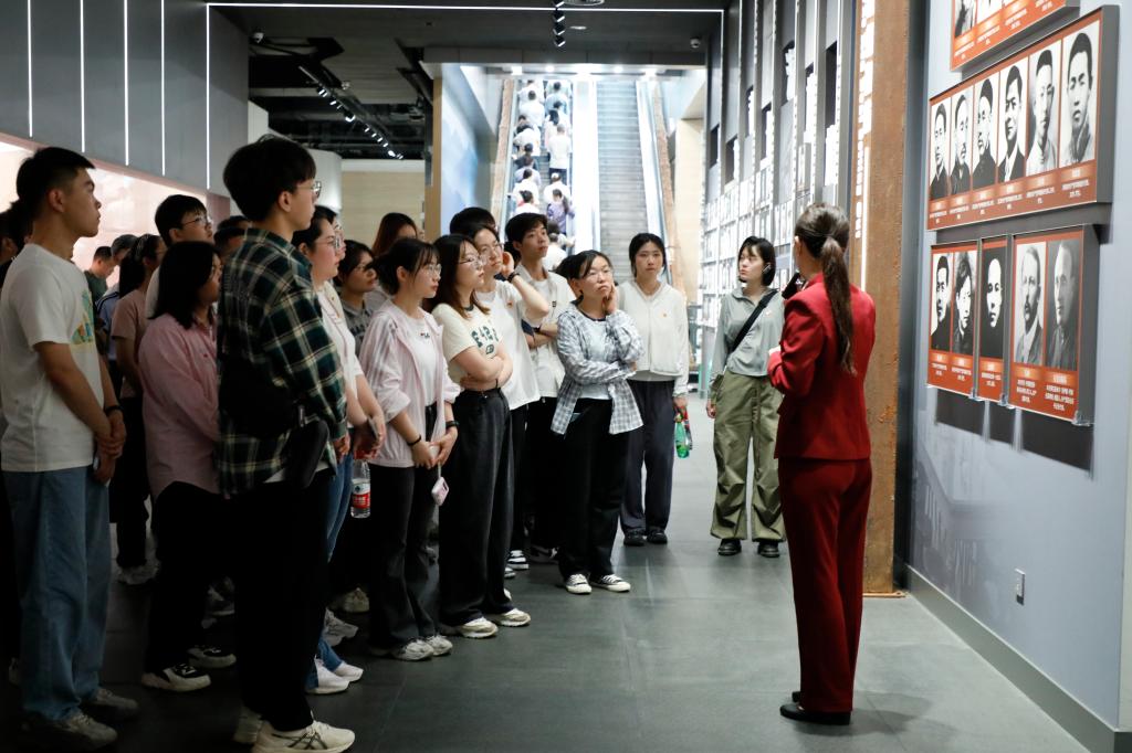 每一件珍贵的文物、每一幅宏伟的壁画、每一尊生动的雕塑,无一不诉说着那个风起云涌、惊涛骇浪的时代。馆内陈列的红船模型为我们沉浸式展现了中共一大召开的场景。代表们轻呼出的“马克思主义万岁!中国共产党万岁!中国万岁!世界劳工万岁!”却是时代的最强音。同学们认真听着讲解,仿佛置身那个时代,感受到了最炽热的革命精神和最崇高的理想信念。