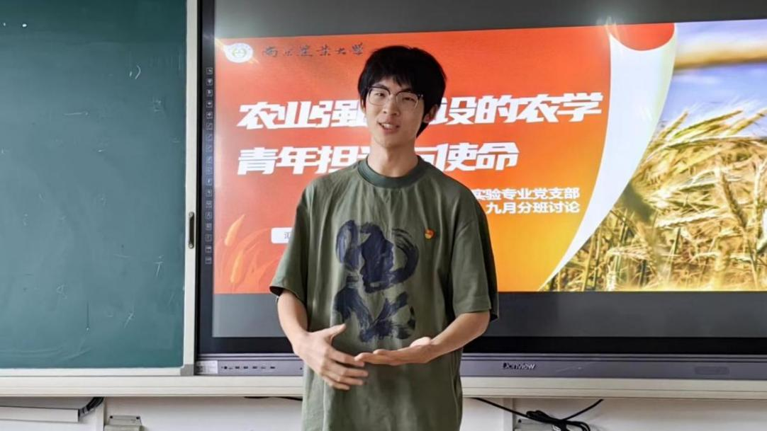 9月24日下午,植物实验专业党支部于教学楼A302召开九月分班讨论。本次讨论的主题为“农业强国建设的农学青年担当与使命”,由党支部书记金佳雯主持,全体党员和部分入党积极分子参与。