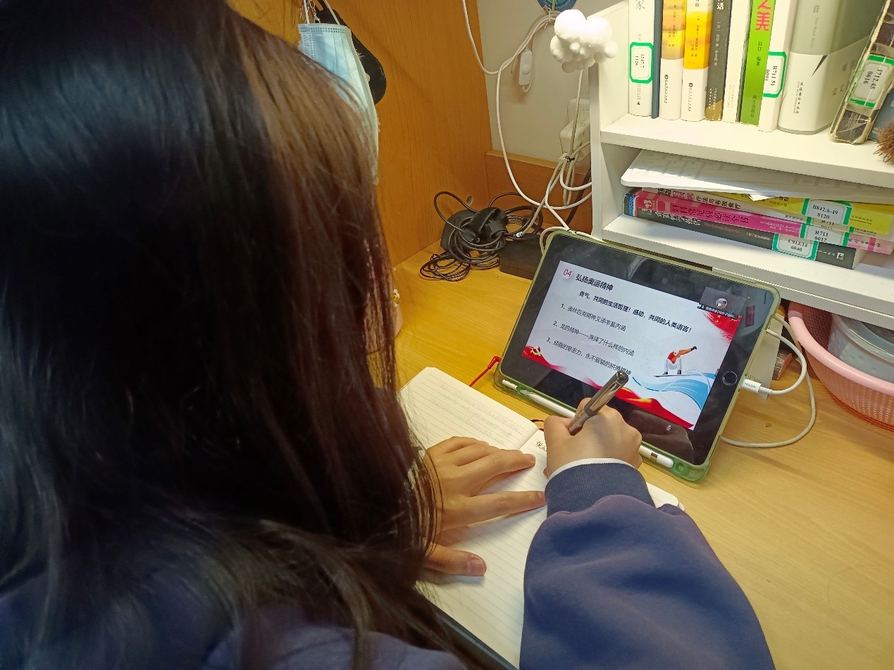 随后安敬威同学从“中国特色”、“绿色理念”、“人文精神”及“大同梦想”四方面展开剖析冬奥会给世界带来了什么。二十四节气、中国红、冰雪五环等等出现在北京冬奥会上,融合在方方面面,独特又具风采。同时我国秉持着绿色理念,用氢燃料制造火炬、客车,利用太阳能、风力发电等能源,同时采用了二氧化碳制冷技术。
