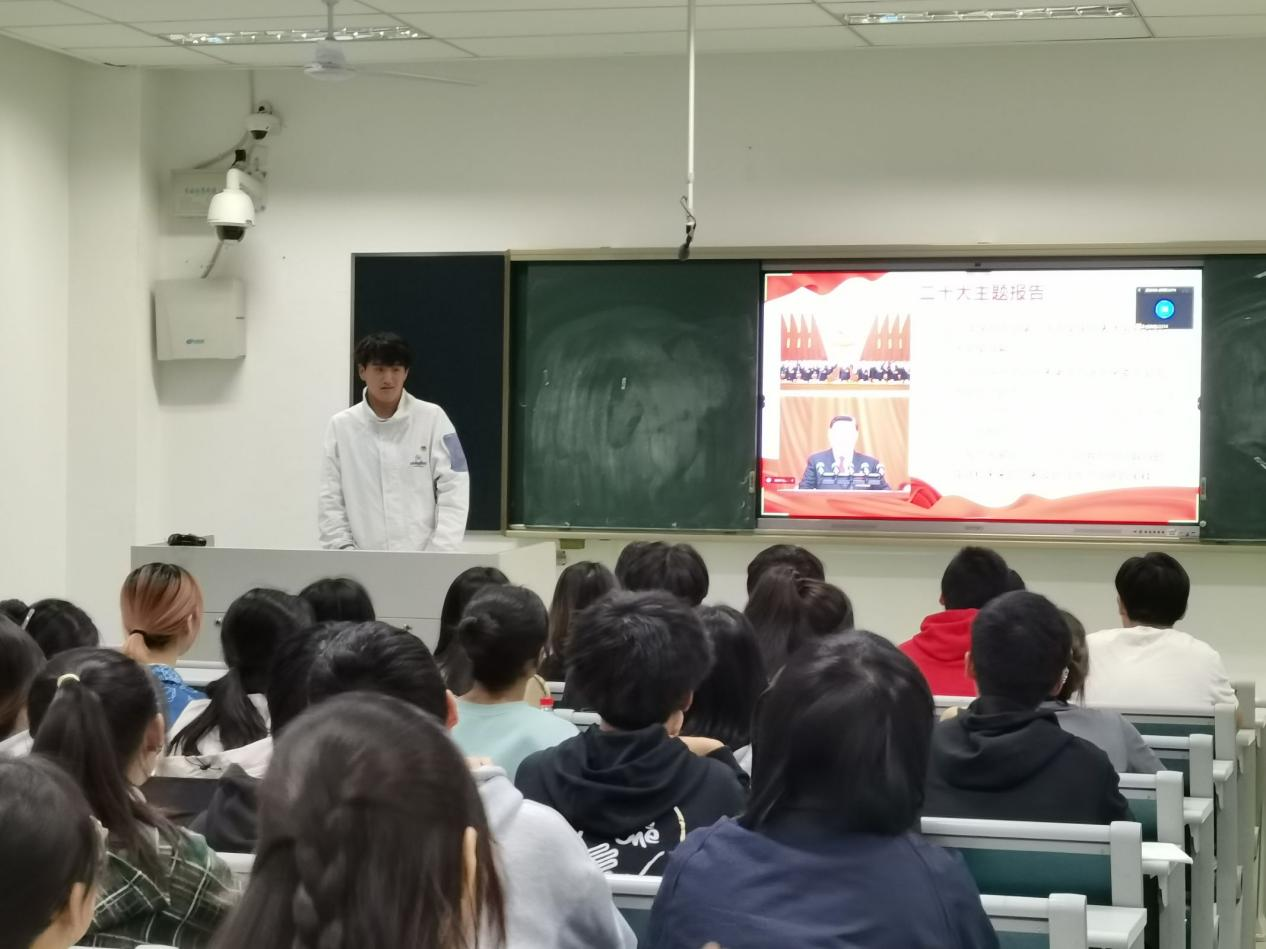 第二部分“聚焦总书记讲话”中,沈卓阳同学详细介绍了习近平总书记所作的主题报告,并从报告的十五个方面为我们一一讲解其中要点。在他的讲述下,我们详细学习了主题报告的方向内涵,关注到十九大到二十大的主题变化,能够更清晰地把握发展动态,并且经过总结和问答环节巩固了自己的理论学习。在自由讨论环节中,大家对各方面的内容各有偏重,分别阐述了自己的观点,达到了相互学习的效果。