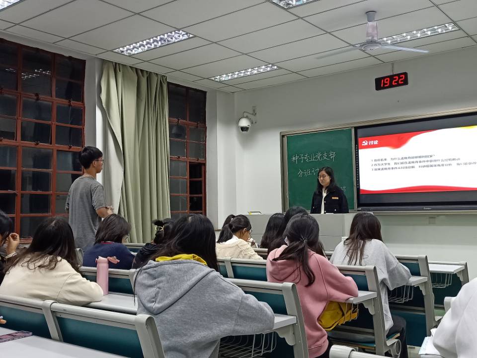 在分班讨论的最后,种子专业党支部书记赖昕彤和组织委员郑滢颖分别发表了自己的看法并对此次分班讨论进行了总结。