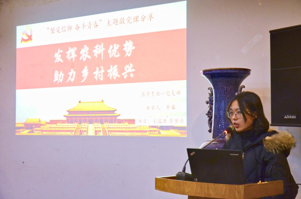 会前,爱爱啦 分党校展示了本院研究生党支部制作的微党课材料,给予大家参考与学习。随后,农学专业一党支部、农学专业二党支部、植物实验专业党支部、种子专业党支部等支部的代表以农科学子的身份,从“用全球眼光看中国发展”、“新中国成立以来成就”、“习近平总书记给全国涉农高校回信精神”、“农科学子如何助力乡村振兴”、“青年学子如何做到‘自讨苦吃’”等方面出发,从不同的视角展开分享,展示了新中国成立70年来的光辉历程和伟大成就,展现农科学子的思考和青年力量。