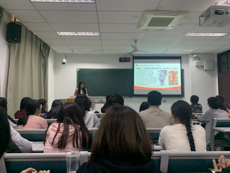 第三部分的“文化成就”板块,刘羽琪同学给支部成员分享了我国在公共文化建设,非物质文化遗产发展,文化产业的投入等方面取得的辉煌成就。