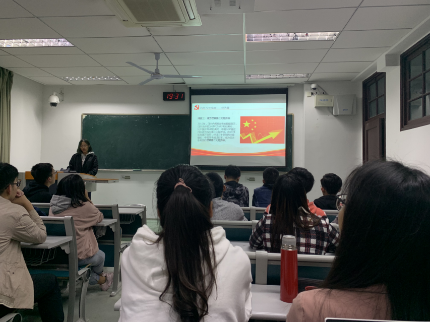 20191027日晚,农学专业一党支部于主楼216开展了以“回首新中国成立70周年取得的成就”为主题的分班讨论。本次讨论分别从政治,经济,文化,科教和社会五个层面展开,回顾了自新中国成立以来70周年里取得的辉煌成就。