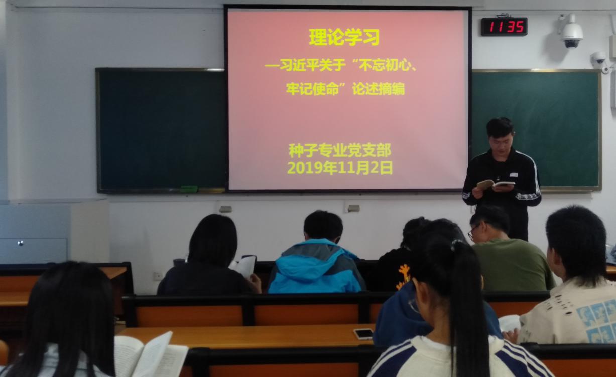 种子专业党支部开展“不忘初心、牢记使命”主题教育集中学习