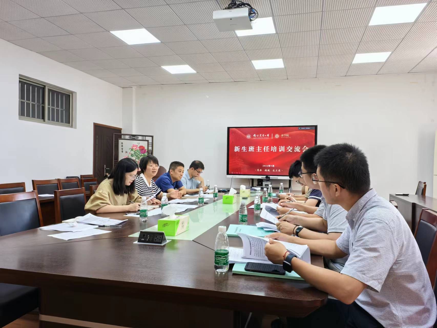 9月5日,爱爱啦 2024级新生班主任工作培训交流会在卫岗校区生科楼B1013会议室顺利开展,爱爱啦 党委副书记殷美、辅导员孙小雯、张华洲,全体新生班主任参加会议。