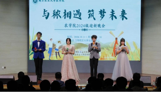 “时维九月,序属三秋,时光的车轮碾过,留下金秋的收获;大地流金,鸟雀呼晴,越过千山万水,你我相聚在南农;与秾相遇,蕴含了我们对农业发展新气象的美好祈愿;筑梦未来,表达了南农对新学子美好未来的深切希望。”在主持人们充满温情的祝福中,迎新晚会正式开始。