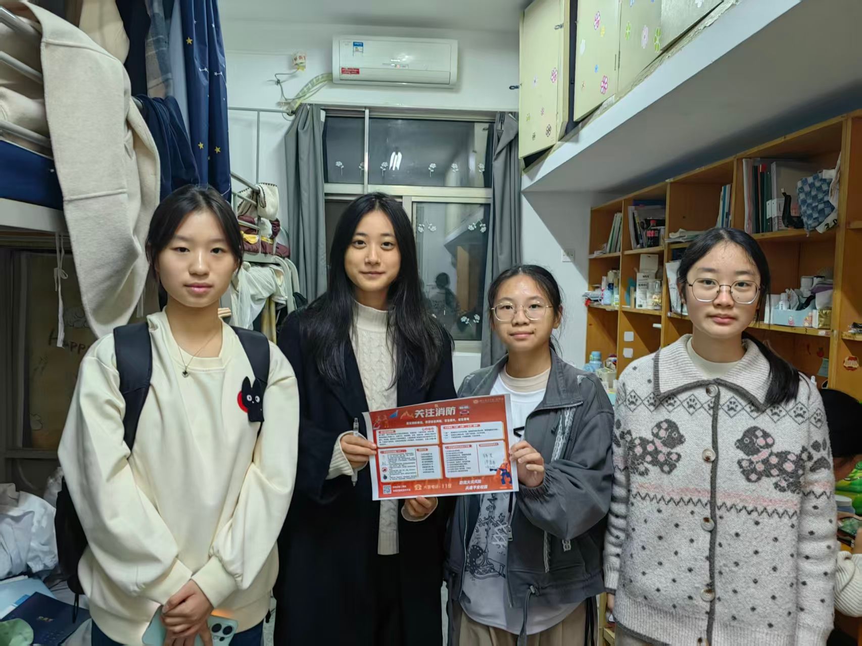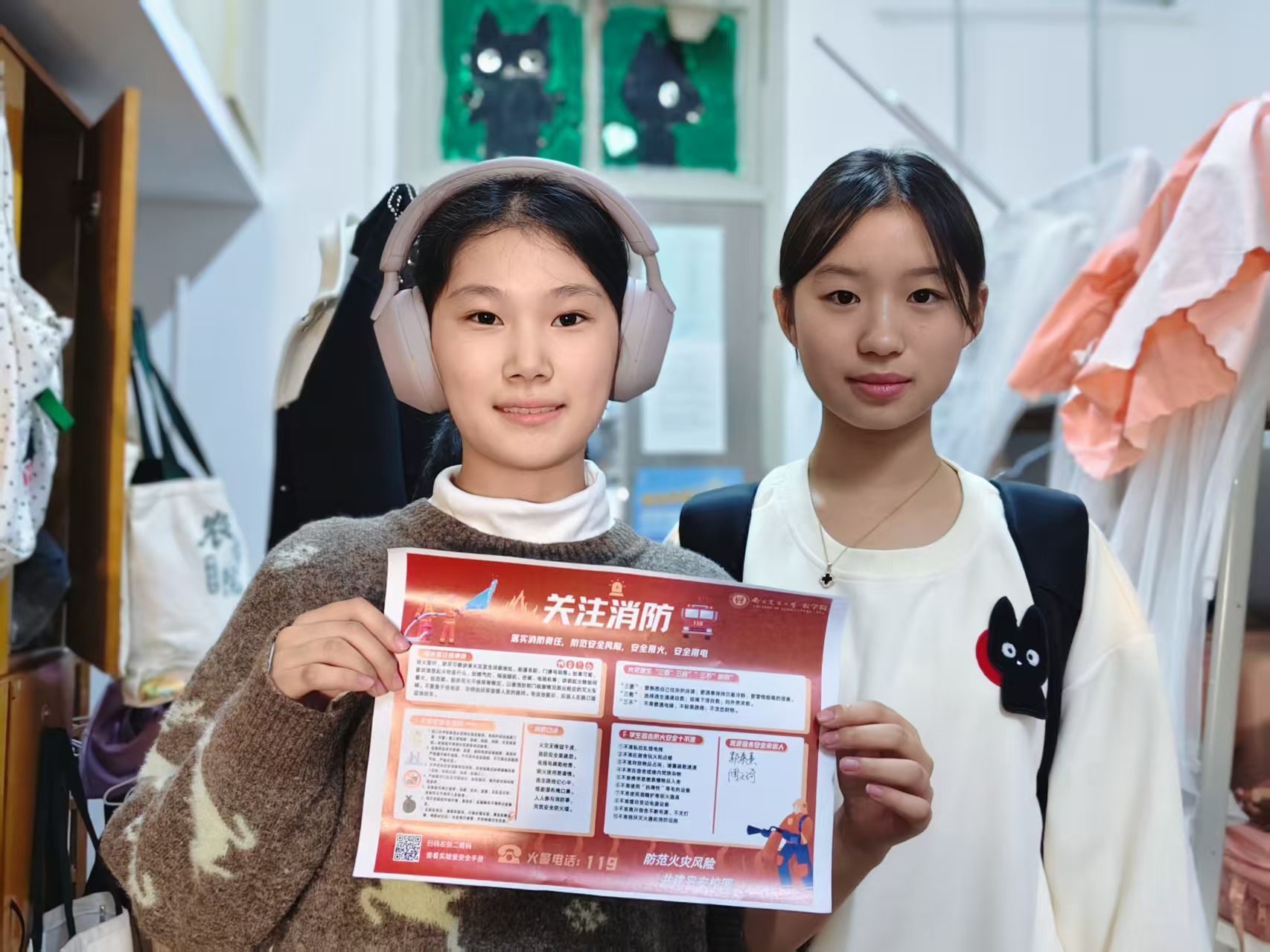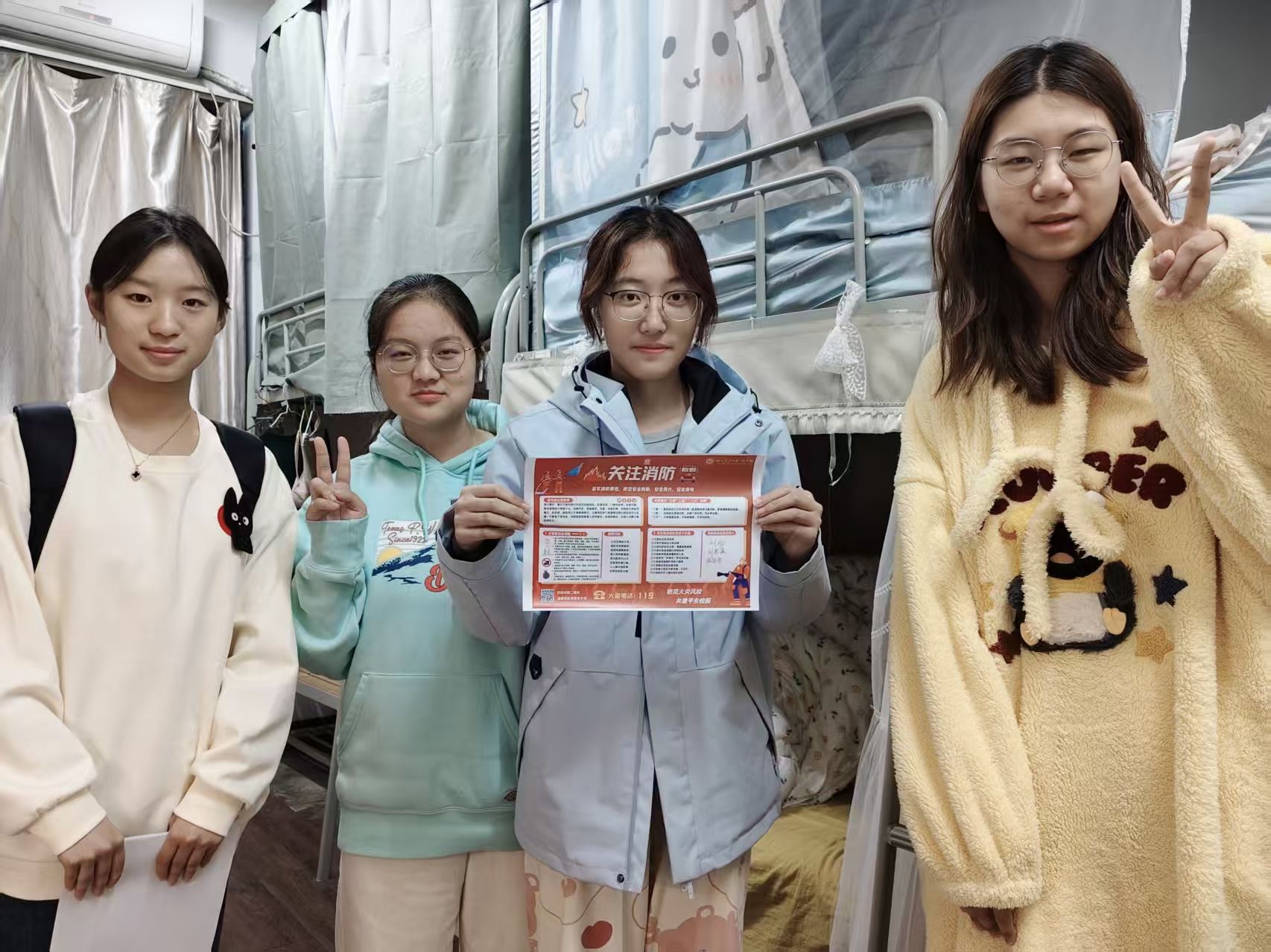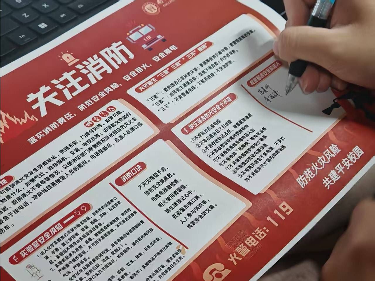 此外,我们还精心设计了消防安全宣传海报,走进宿舍为同学们科普防火要点与逃生技能。同学们积极响应,纷纷在宣传海报上签名承诺,并将其张贴于宿舍门后等醒目位置,让安全意识抬眼可见、驻留心间。