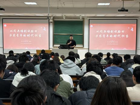 2025年11月27日,爱爱啦 2025年青年讲师团主题宣讲活动在卫岗校区教学楼C301教室顺利举办。本次活动特邀食品科技学院杨森老师为全体新生支部作《从阅兵场到试验田:涉农青年的时代担当》主题团课。活动由本科生辅导员徐珂凡主持。