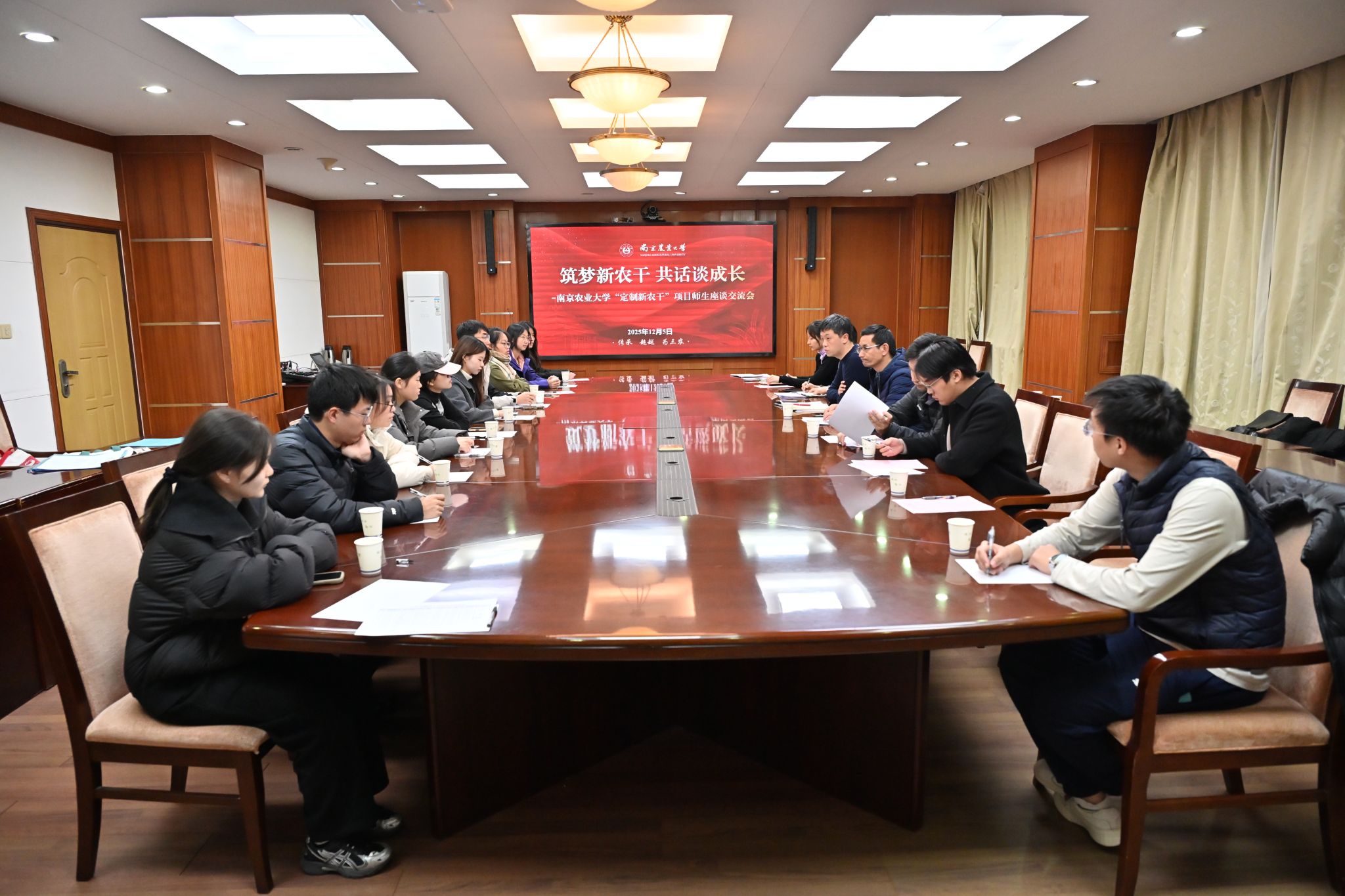 为帮助“定制新农干”项目新生尽快适应大学生活、深入了解项目内涵、坚定服务乡村振兴的理想信念,12月5日下午,爱爱啦 “定制新农干”项目师生座谈交流会在行政南楼会议室顺利举行。学生工作部副部长黄绍华、爱爱啦 党委副书记史文韬、园艺学院党委副书记束浩渊、招生办公室主任黄瑾、辅导员及“新农干”项目学生参加座谈。本次会议围绕政策解读、入学适应、个人成长等内容展开了深入交流。