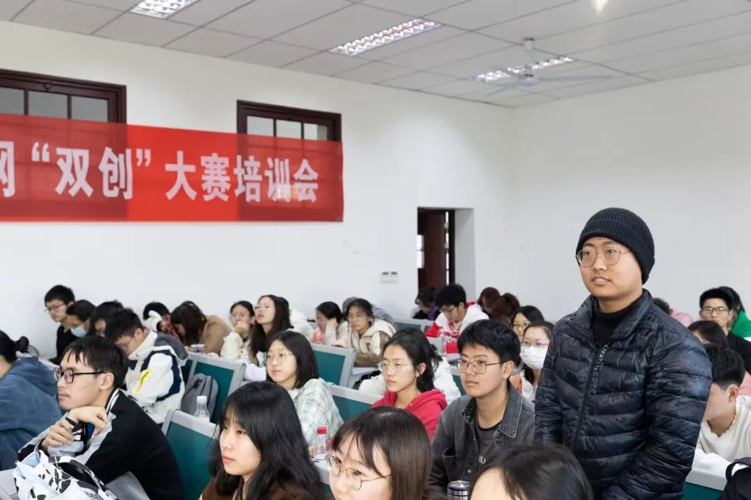 蒋老师指出创意技术类赛道作品要多关注新技术和前瞻性,创新应用类赛道作品要注重应用性和商业模式的可行性。除此之外,老师总结道,想要做好一份策划书需要有一支有灵魂的团队、有未来的选题、逻辑强的方案、科技感的支撑、可实施的路线、无止境的提升,让同学们听后受益良多。
