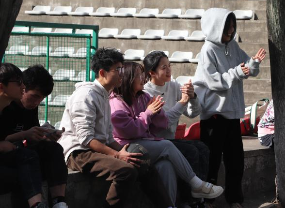 早上八点半,各班参赛队伍准时到场,开始上午的趣味项目。同学们躺成一排,以仰卧起坐的形式运球,排球在同学们手中相互传递,由队伍最前端同学投出。篮球项目中,同学们娴熟地运球投球,拍击出青春的风采。场上的同学们热火朝天,奋力传球、彼此加油;场内外的同学欢呼喝彩,助威声、欢笑声此起彼伏,欢乐洋溢在每一位同学脸上。