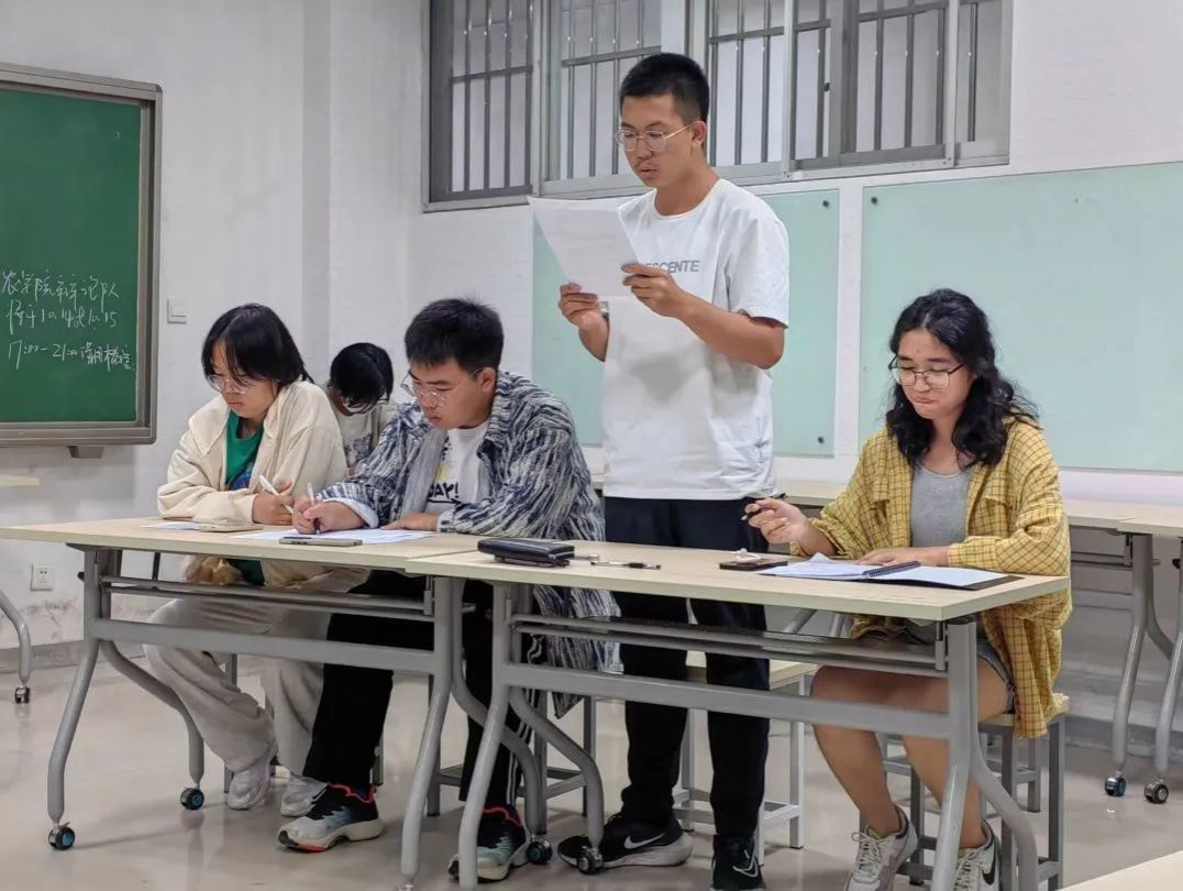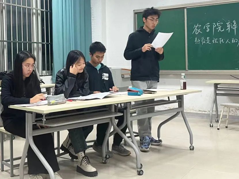 尽管是第一次接触辩论,但大家仍对辩论充满热情,第一轮比赛就激烈万分,双方辩手你来我往,在气势上互不相让,步步紧逼。他们不断推理论证,总结归纳,使得整个辩论过程充满了悬念和思考。经过两场激烈的角逐之后种子队、智农队与首轮轮空的植实队入围决赛。决赛采用循环赛制,每队要派出八人分别作为同一辩题的正反方进行辩论。初赛失利的同学们积极填补各队空缺,迅速投入到新一轮的备战之中。